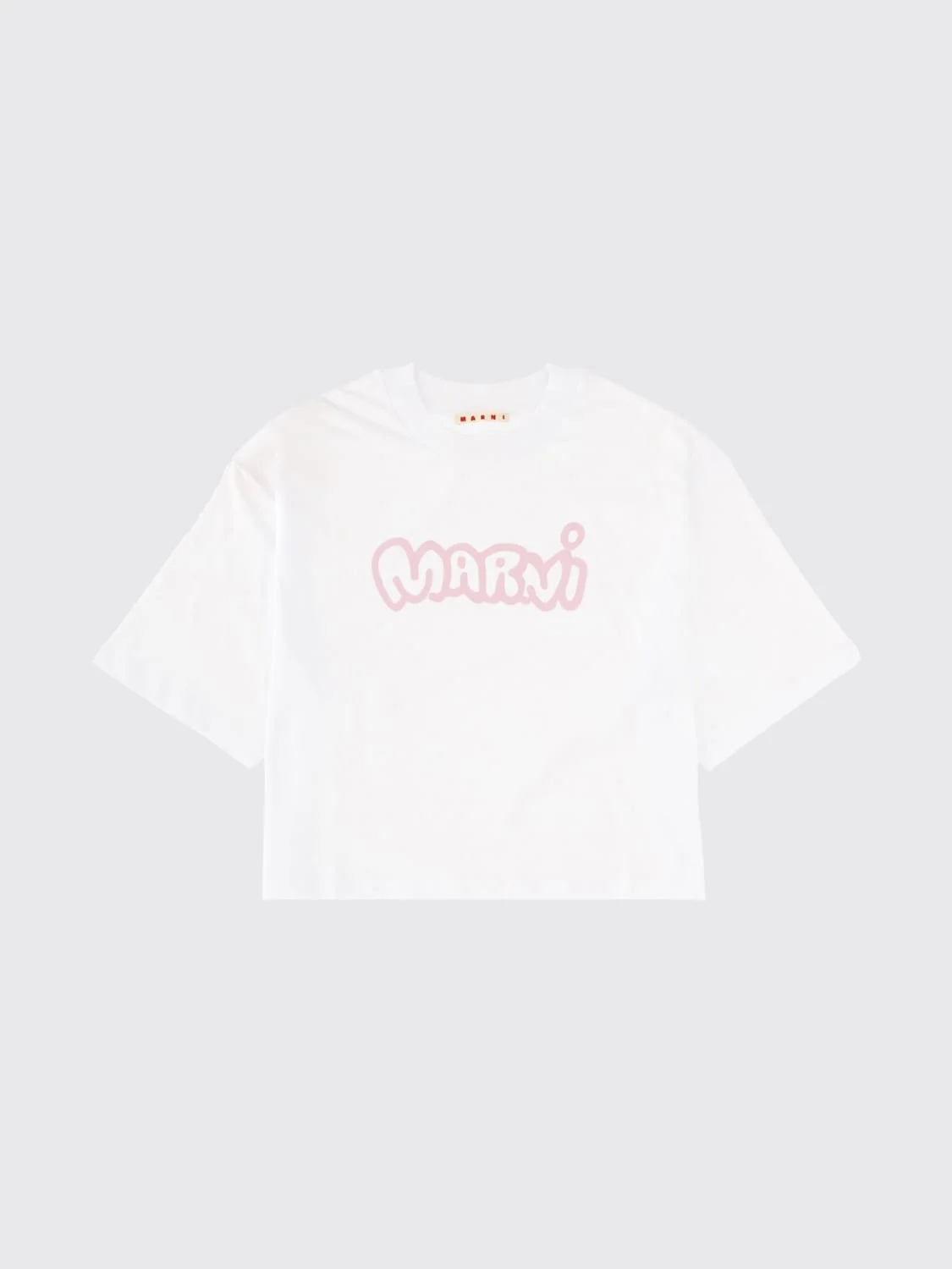 DESCRIPTION - Style: Contemporary - Model: Crewneck - Neckline: Crewneck - Shoulders: Relaxed - Sleeves: Short - Bottom: With straight hemline - Logo: Printed graffiti - Materials: Cotton - Pattern: Logo DETAILS AND CARE Composition Cotton | 100% cotone SIZE AND FIT Sizes not available Size and fit Cropped fita Designer code: THJE0333P7USCY60 LOW01 Giglio Code: H67605 Designer: Marni Collection: Marni Woman Category: Clothing Marni