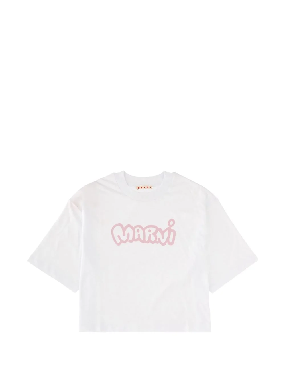 logo-print T-shirt white round neck short sleeves logo to the front straight hem Imported Composition Cotton 100% Washing instructions Read Manufacturer Guidelines