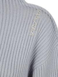 logo-embroidered sweater Highlights - Grey - High neck - Drop shoulder - Long sleeves Made in Italy Composition Virgin Wool 100% SIZE & FIT FittingInformation Designed for a relaxed fit, this piece allows for comfort and movement when worn Made with a midweight knit, this piece offers some stretch
