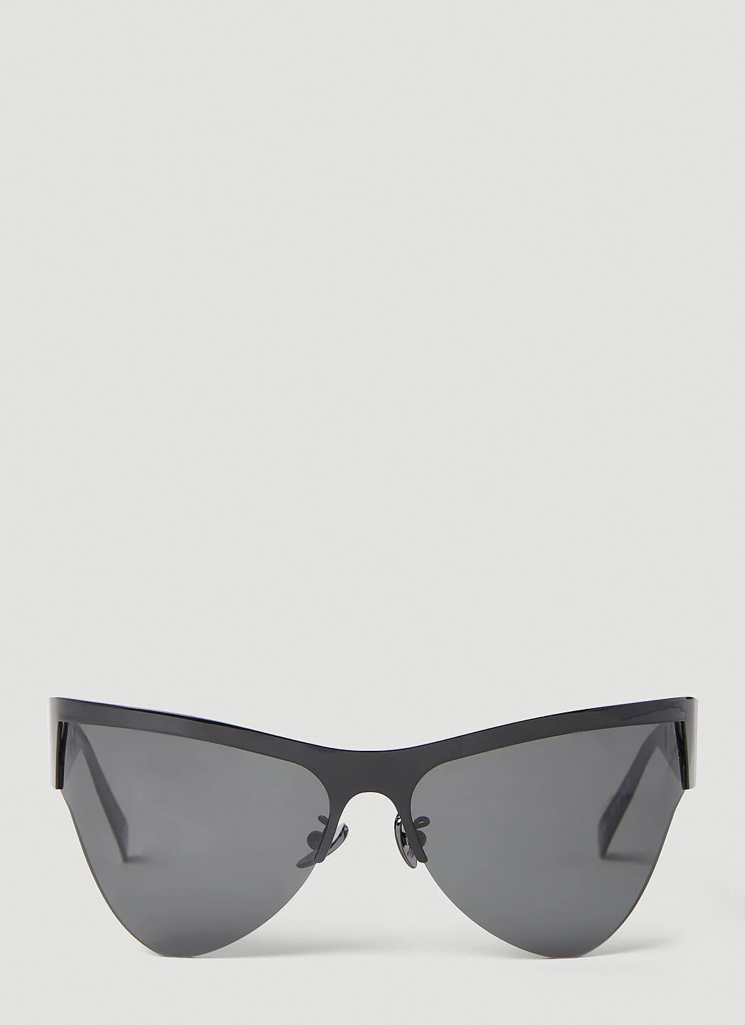 - Steel-blend fabrication in a matte finish - Triangular rimless frames - Tinted lenses - Side cut outs - Made in Italy - 60% Steel, 40% Polyamide - Color: Black - Code: GV2