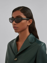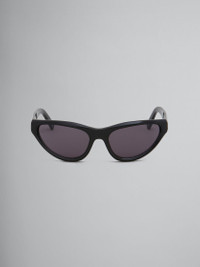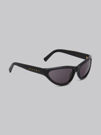 Mavericks sunglasses featuring a curved mask shape in black acetate. Temples with Marni logo. Black lenses. Made in Italy. DETAILS COMPOSITION Material: 65% Acetate 15% Metal 20% Nylon