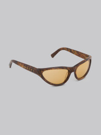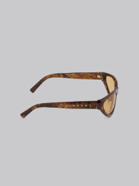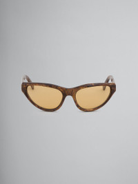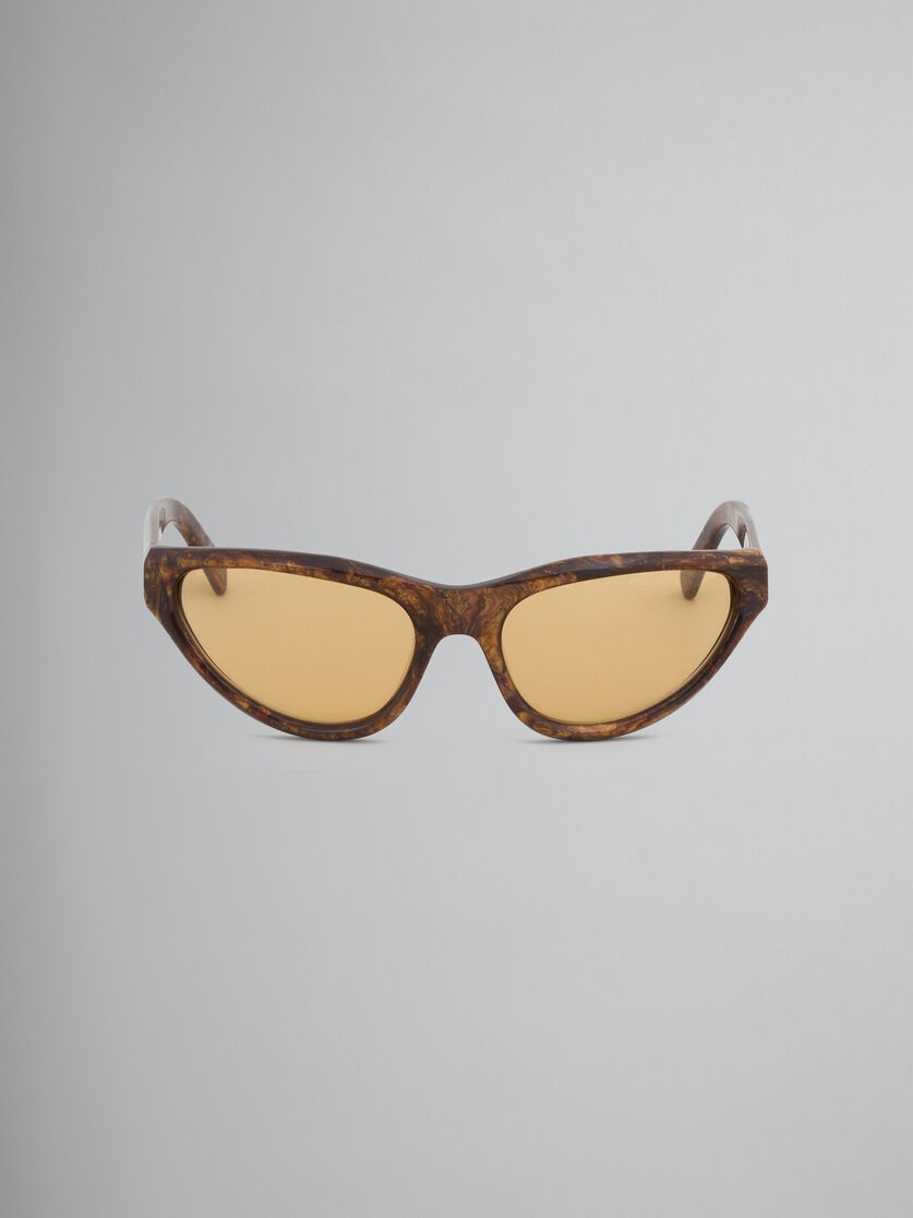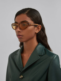 Mavericks sunglasses featuring a curved mask shape in radica-effect acetate. Temples with Marni logo. Orange lenses. Made in Italy. DETAILS COMPOSITION Material: 65% Acetate 15% Metal 20% Nylon