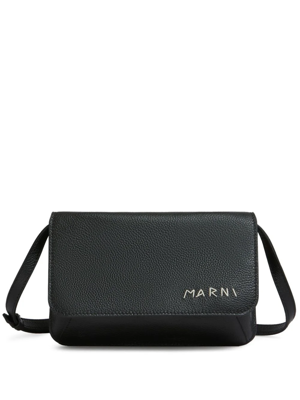 Mending leather pochette bag Highlights - Black - Calf leather - Grained texture - Tonal stitching - Embroidered logo to the front - Foldover top with magnetic fastening - Adjustable detachable shoulder strap - Main compartment Made in Italy Composition Outer: Calf Leather 100% SIZE & FIT Measurement DEPTH 2.36 in(6 cm) STRAP 37.4 in(95 cm) HEIGHT 5.11 in(13 cm) WIDTH 8.07 in(20.5 cm)