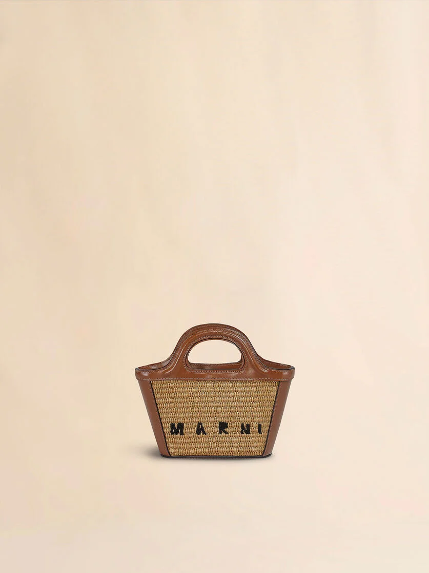 TROPICALIA MICRO BAG IN BROWN LEATHER AND RAFFIA