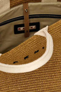 cod. SHMP0077U0P3860Z0R42 'Mini Tote' raffia shopping bag with double canvas handle and front logo embroidery. Color: Beige Size & Fit: W 32 x H 24,5 x D 14 cm Composition: 52% cotton 48% polyamide