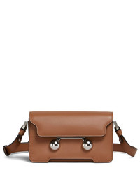 mini Trunkaroo shoulder bag Highlights - Brown - Calf leather - Smooth grain - Tonal stitching - Foldover top with magnetic fastening - Adjustable detachable shoulder strap - Stud detailing - Silver-tone hardware - Main compartment - Internal slip pocket - This piece comes complete with a protective dust bag. Made in Italy Composition Outer: Calf Leather 100% Lining: Lamb Skin 100% SIZE & FIT Measurement STRAP 38.58 in(98 cm) DEPTH 3.54 in(9 cm) WIDTH 6.69 in(17 cm) HEIGHT 4.33 in(11 cm)