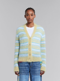 Long-sleeve cardigan knitted from a brushed mohair blend with multicolour stripes. V-neck. Regular fit. Made in Italy. DETAILS FIT The model is 5' 10''. The model is wearing size 40 IT. COMPOSITION Primary Fabric: 80% Mohair Knit 20% Polyamide Knit