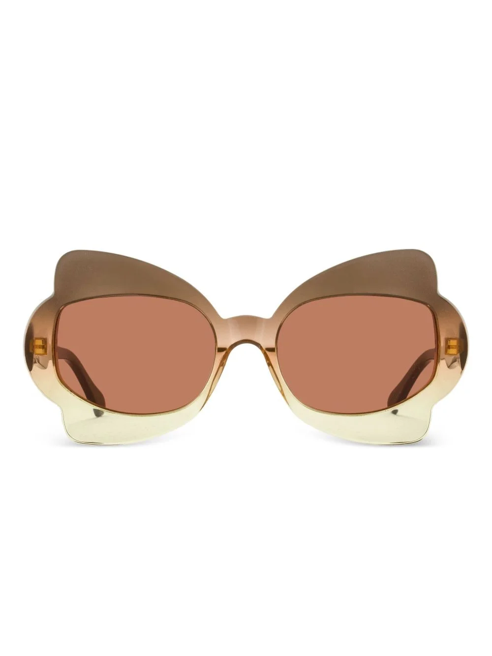 Monumental Gate butterfly-frame sunglasses Highlights - Brown - Sculpted edges - Oversize frame - Two-tone effect - Tinted lenses - These glasses come with a protective case. Imported Composition Plastic 100%, Acetate 100%, Nylon 100% SIZE & FIT Measurement Arm Length 5.7 in(14.5 cm) Bridge Width 0.78 in(2 cm) Lens Diameter 2.2 in(5.6 cm)