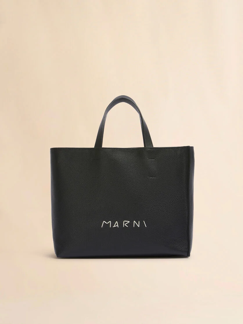 BLACK LEATHER MUSEO SOFT TOTE BAG WITH MARNI SYMBOL EMBROIDERY