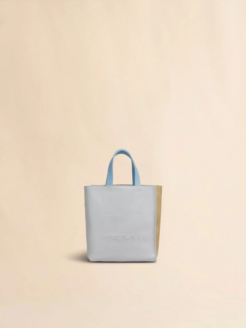 MUSEO SOFT MINI BAG IN GREY BEIGE AND BLUE LEATHER WITH MARNI MENDING