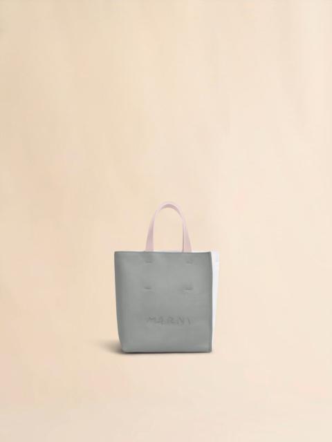 Museo North/South tote bag crafted from milled calfskin leather. Mini size. Colour-block design. Top handles and detachable and adjustable buckled shoulder strap. Open design with fabric lining and inside zip pocket. Hand-stitched Marni Mending logo on the front. Made in Italy MODEL SHMP0040L3P6533ZO774 COMPOSITION Body: 100% Calf Leather - Contrast: 100% Calf Leather - Contrast: 100% Polyester - Lining: 95% Cotton 5% Acrylic - Inside: 100% Calf Leather - Metallic Parts: 100% Brass - Metallic Parts: 100% Zama