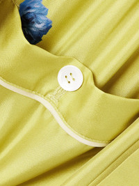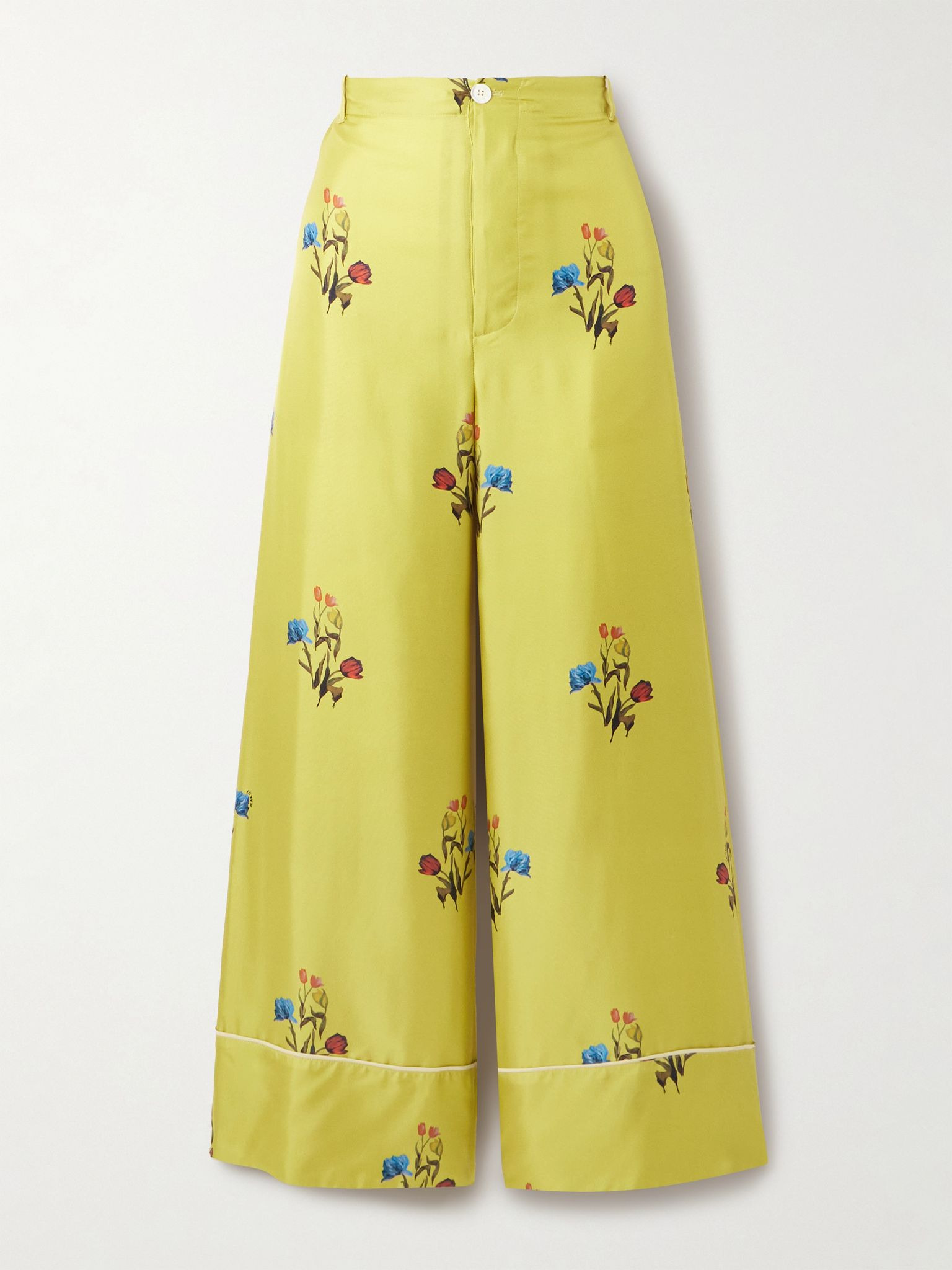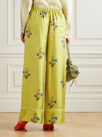 Colorful florals have become something of a signature in Marni's latest collections – the blooms on these trousers feel all the more eye-catching against the mustard-yellow background. Made in Italy, they're cut from glossy silk-twill with roomy wide legs and a high waist. Size & Fit - Fits true to size, take your normal size - High-rise, cut for a wide-leg fit - Partially elasticated at the waist for a flexible fit - Lightweight, fluid, non-stretchy fabric - Model is 177cm/ 5'10" and is wearing an IT 38 Model measurements: - Bust: 85cm/ 33.5" - Waist: 62cm/ 24.5" - Hip: 91cm/ 36" Details & Care - Multicolored silk-twill - Partially concealed button fastenings along front - 100% silk - Dry clean