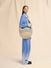 NATURAL RAFFIA AND BLUE NASSA MEDIUM HOBO BAG