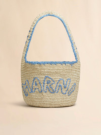 Nassa raffia-effect hobo bag. Medium size. Hand-woven from Indonesian fabric, featuring a double-woven construction for rigidity. Hand-stitched contrast edging along the handle and organza Marni logo. Made in Italy MODEL SBMP0256A0P8561ZO981 COMPOSITION Body: 100% Paper - Application: 100% Polyester