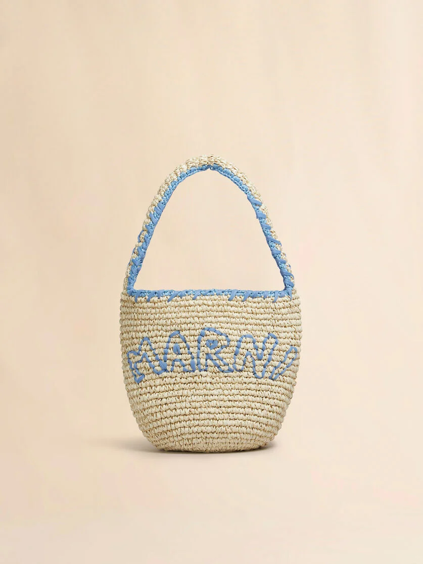 Nassa raffia-effect hobo bag. Small size. Hand-woven from Indonesian fabric, featuring a double-woven construction for rigidity. Hand-stitched contrast edging along the handle and organza Marni logo. MODEL SBMP0257A0P8561ZO981 COMPOSITION Body: 100% Paper - Application: 100% Polyester