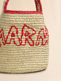 Nassa raffia-effect hobo bag. Small size. Hand-woven from Indonesian fabric, featuring a double-woven construction for rigidity. Hand-stitched contrast edging along the handle and organza Marni logo. MODEL SBMP0257A0P8561ZO980 COMPOSITION Body: 100% Paper - Application: 100% Polyester