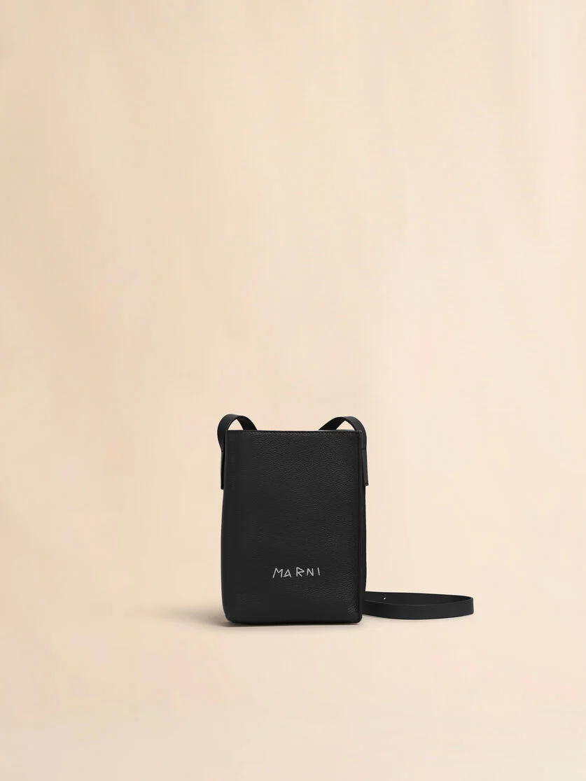 BLACK LEATHER MUSEO NANO BAG WITH MARNI SYMBOL EMBROIDERY