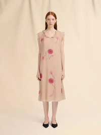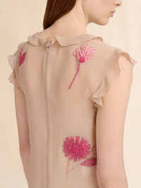 NUDE SILK DRESS WITH CAMELLIA EMBROIDERY