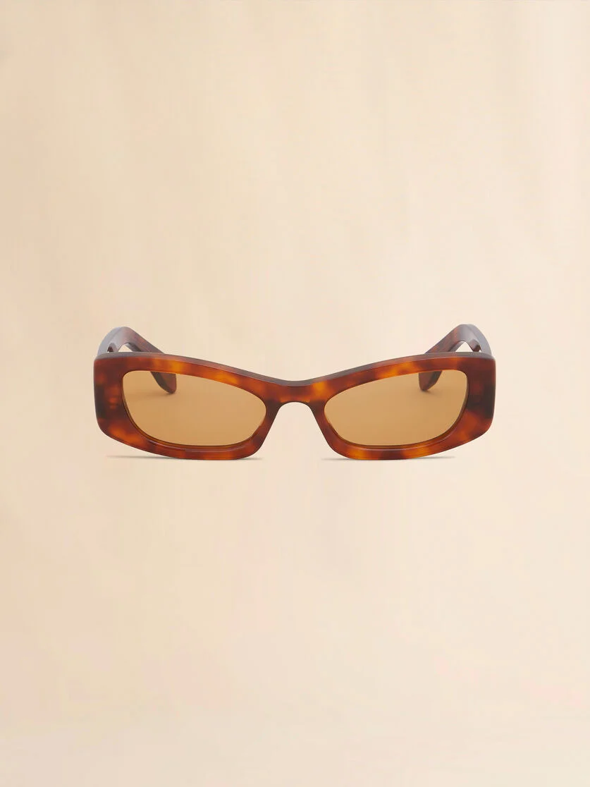 Nyama sunglasses with a bold acetate frame in a rectangular butterfly shape. The wide temples feature a gold-coloured Marni logo on the side. Made in Italy MODEL EWME0086A0H390003F7X COMPOSITION Material: 65% Acetate 15% Metal 20% Resin