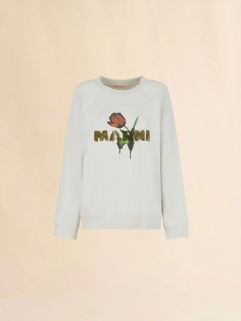 Cotton sweatshirt, printed with a tulip and Marni logo on the chest. Regular fit with crew neck and long raglan sleeves. Made in Italy MODEL FLJE0128PAUSCY32LOW09 COMPOSITION Primary Fabric: 100% Cotton Knit