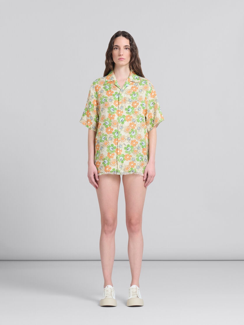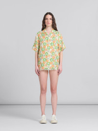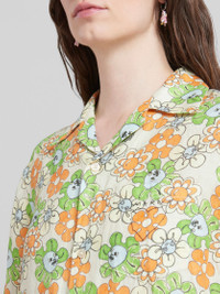 Short-sleeved bowling shirt crafted using linen sourced from European cultivation. Embellished with the collection's exclusive Funky Charm Explosion print, designed by artist Alake Shilling. Regular fit, edged with frayed hem and cuffs. Hand-stitched Marni mending logo with heart detail on the chest pocket. Made in Italy MODEL CAMA0587S1UTL005FCW08 COMPOSITION 100% LIW