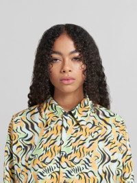 Oversized shirt made from organic stretch cotton poplin. Printed with the collection's exclusive Swirling Tiger Fever Dreams pattern, designed by artist Alake Shilling. Long sleeves, classic collar and button closure. Hand-stitched Marni mending logo with heart detail on the chest. Made in Italy MODEL CAMA0586S1UTC399STR05 COMPOSITION 98% CO1 2% EAW