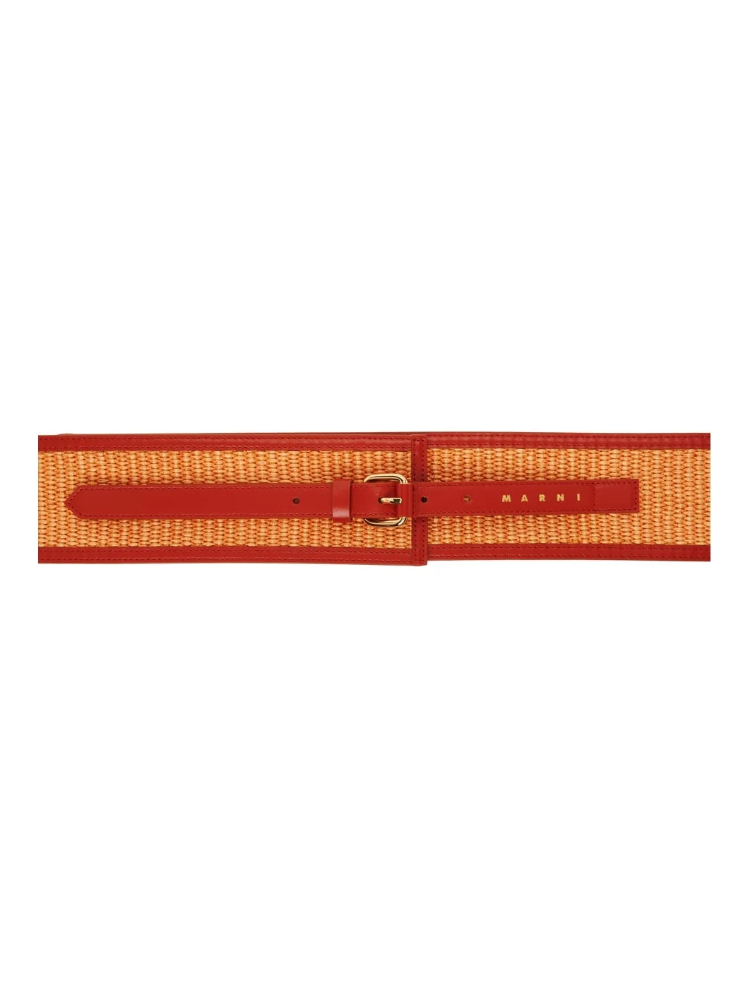Woven cotton- and nylon raffia belt in orange. · Buffed calfskin trim in brown throughout · Gold-tone logo stamp at length · Pin-buckle fastening · W3" Supplier color: Rawsienna Body: 52% cotton, 48% polyamide. Trim 1: 100% calfskin. Trim 2: 100% brass. Made in Italy 241379F001002