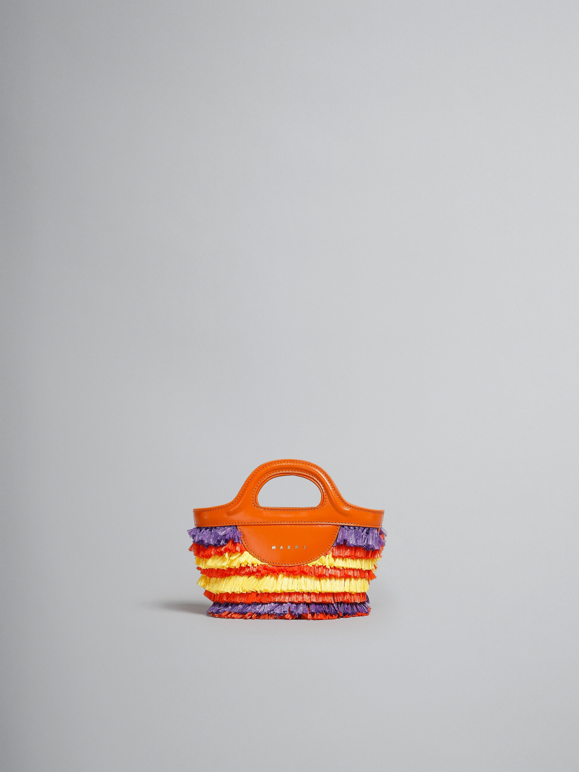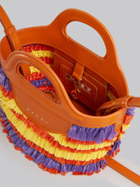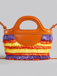 Micro tropicalia with layered fringes of reverse crochet. Soft leather handles, base, shoulder strap and front detail with gold Marni logo. Complete with a lobster hook closure and inside pocket. Gold hardware. Made in Italy. DETAILS COMPOSITION Body: 100% Viscose-Rayon - Contrast: 100% Calf Leather - Metallic Parts: 100% Brass - Metallic Parts: 94% Zinc 4% Aluminium 2% Copper