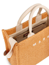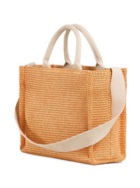 small raffia tote bag Highlights - Carrot orange - Cotton blend - Interwoven design - Embroidered logo to the front - Single shoulder strap - Two rolled top handles - Main compartment - Internal logo patch - Internal zip-fastening pocket Made in Italy Composition Outer: Cotton 52%, Polyamide 48% SIZE & FIT Measurement DEPTH 5.51 in(14 cm) HEIGHT 9.64 in(24.5 cm) WIDTH 12.59 in(32 cm) HANDLE 5.11 in(13 cm) STRAP 32.67 in(83 cm)