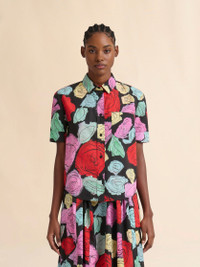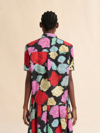 Shirt made from organic cotton poplin. Printed with this season's Orion multicoloured rose pattern, created using a special scraping technique on wet paint. Short sleeves with buttoned cuffs. Button closure. Rounded hem and rear box pleat. Chest pocket. Made in Italy MODEL CAMA0623A0UTC506ORN99 COMPOSITION Primary Fabric: 100% Cotton Woven