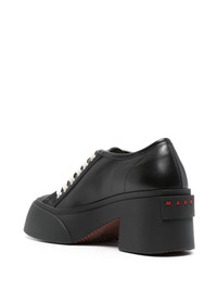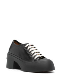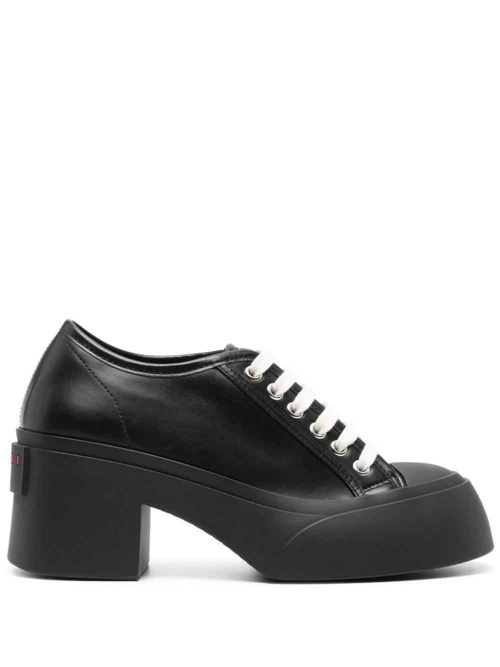 Pablo 70mm lace-up pumps Marni's Pablo family runs the gamut of silhouettes but all share the same rubber platform soles. These leather pumps are no different – they combine the block heel of the collection’s Mary Jane style with the laced uppers of the sneakers. Highlights - Black - Calf leather - Smooth grain - Mid block heel - Logo patch to the rear - Round toe - Branded leather insole - Platform rubber sole - Front lace-up fastening Made in Italy Composition Leather 100% SIZE & FIT Measurement HEEL 2.75 in(7 cm) PLATFORM 1.57 in(4 cm)