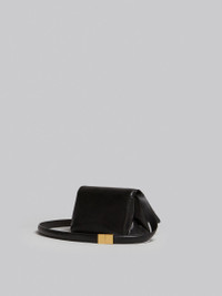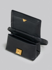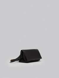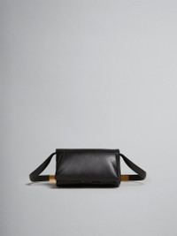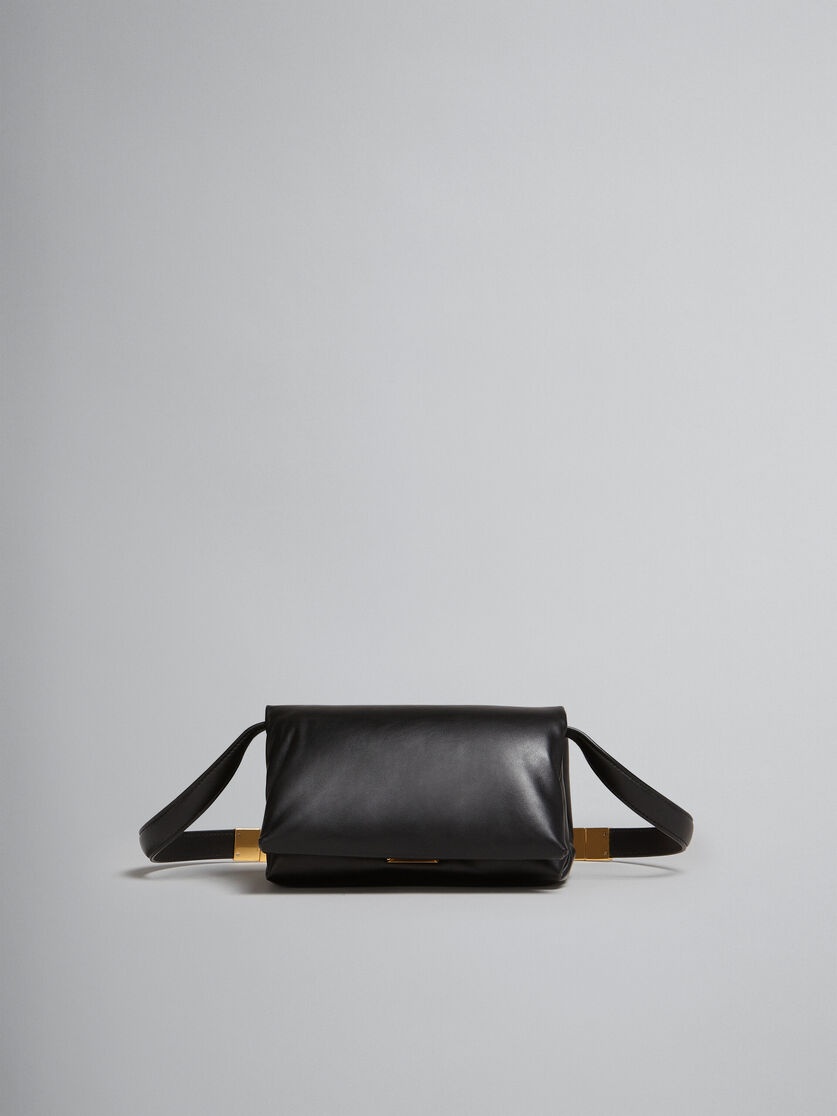 Prisma bag, small size, made of calfskin puffy leather. Flap closure with metal clasp, opening to reveal two compartments and an inside zip pocket. Leather shoulder strap with extension. Shiny gold color hardware. Embossed Marni gold logo in the back. Lining in leather-like coated fabric. Made in Italy DETAILS COMPOSITION Body: 100% Calf Leather - Lining: 55% Cotton 45% Polyurethane - Metallic Parts: 100% Brass