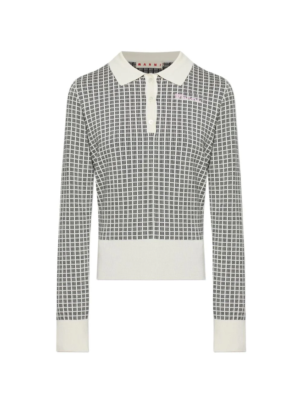 patterned polo top Highlights - White - Patterned - Polo collar - Button fastening Imported Composition Virgin Wool 70%, Silk 30% Washing instructions Read Manufacturer Guidelines