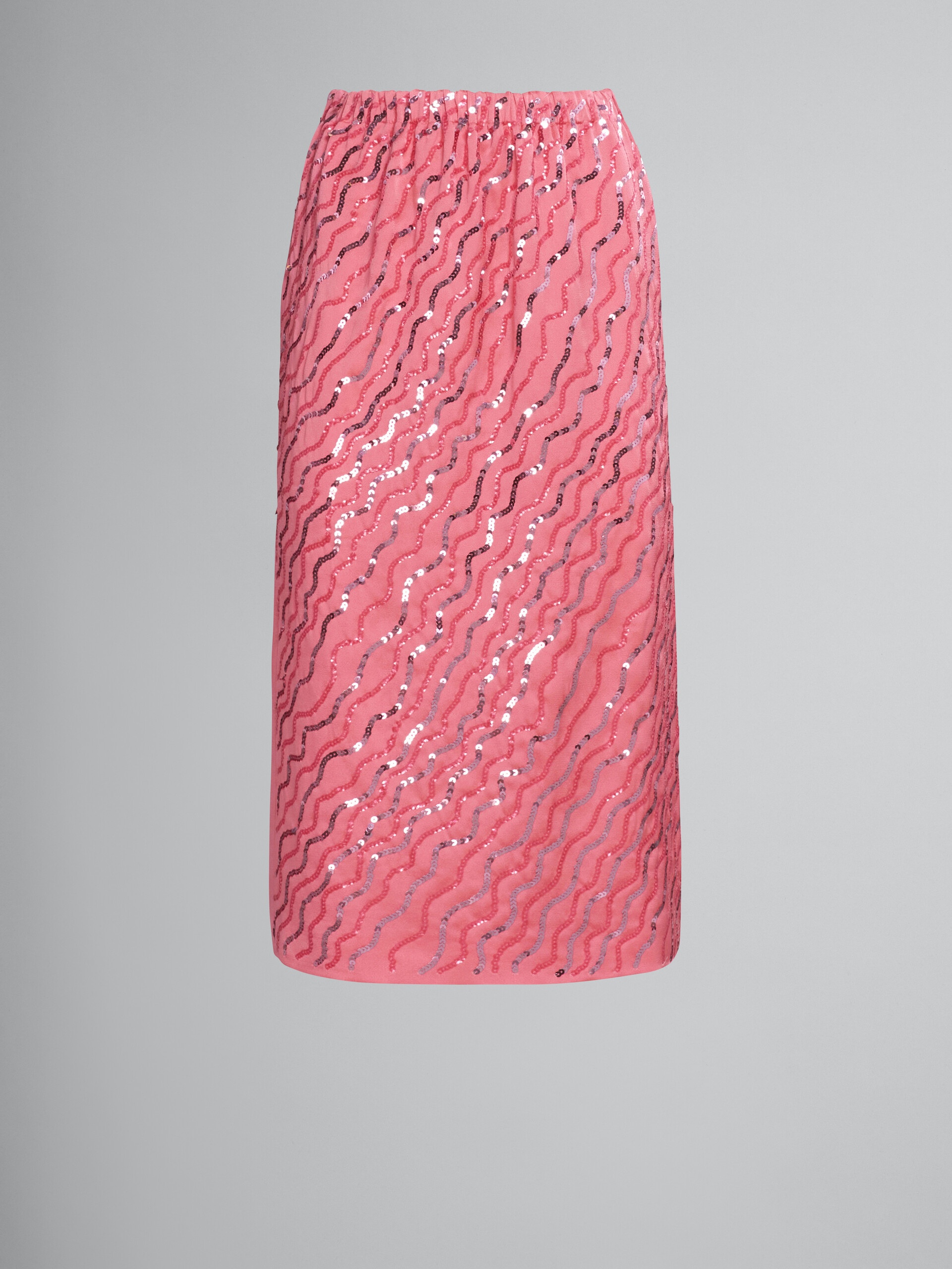 PINK CRÊPE SATIN SKIRT WITH SEQUINS
