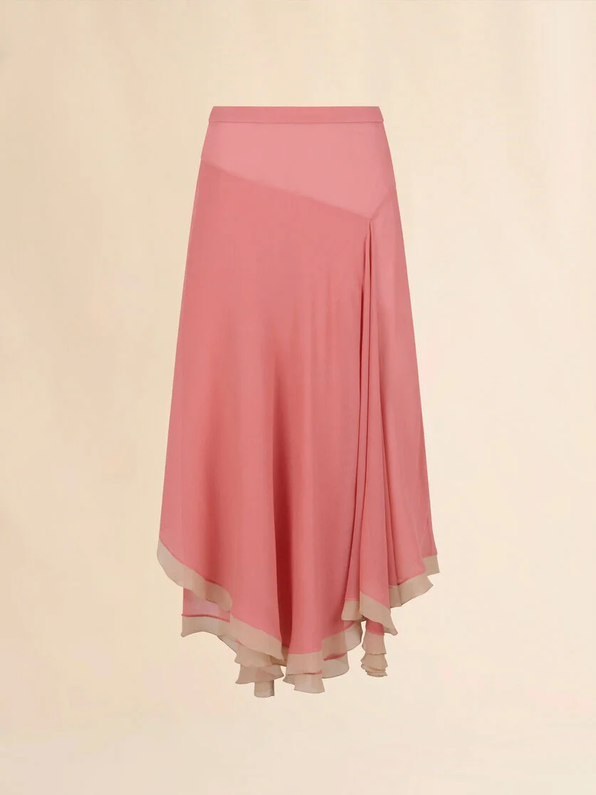 Skirt made from silk creponne. Midi cut with peplum waist and front slit. Flowing asymmetrical silhouette with contrast ruffle hem. Concealed side zipper closure. Made in Italy MODEL GOMA0770QVUTSG2200C33