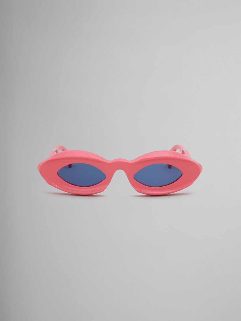 Dark Doodad sunglasses made from chunky acetate. Mysterious oval silhouette inspired by theatrical masks, flaunting a narrow, compact frame. Oval-shaped lenses, set deep within expertly sculpted rims. Thick temples with distinctive forked tips, embellished with individually hand-set enamelled Marni letters. Made in Italy MODEL EWME0062A0H380004XGT COMPOSITION T1 100% AC