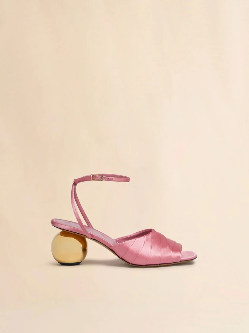 PINK FOLDED SATIN SANDAL WITH SPHERICAL HEEL