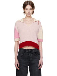 Knit cashmere polo. · Rib-knit spread collar, open placket, hem, and cuffs · Cropped hem · Hand-embroidered logo at shoulder · Dropped shoulders Supplier color: Pink gummy 100% cashmere. Made in Italy 251379F100001