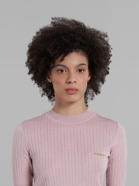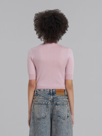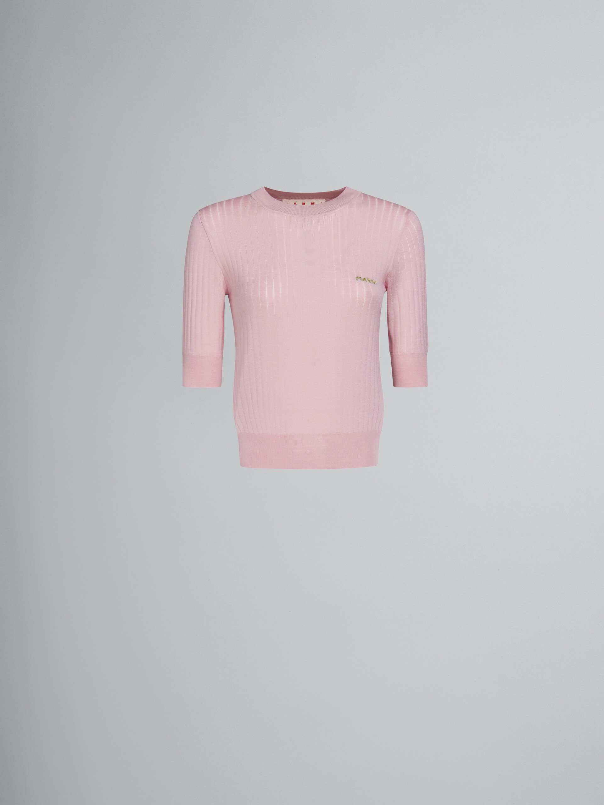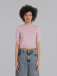 Half-sleeve jumper knitted from a virgin wool and silk blend. Slim-fitting flat-rib construction with embroidered Marni lettering on the chest. DETAILS FIT The model is 5'9.5''. The model is wearing size 40 IT. COMPOSITION Primary Fabric: 70% Virgin Wool Knit 30% Silk Knit