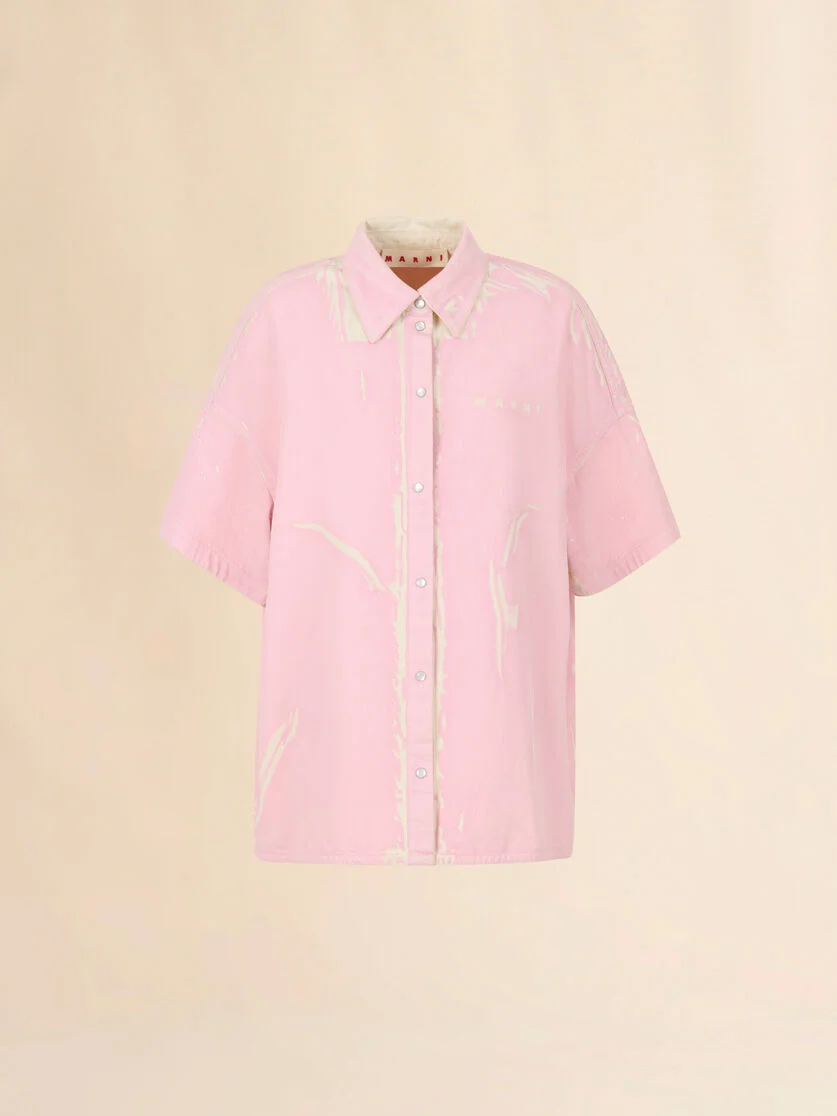 PINK SCREEN-PRINTED DENIM SHIRT