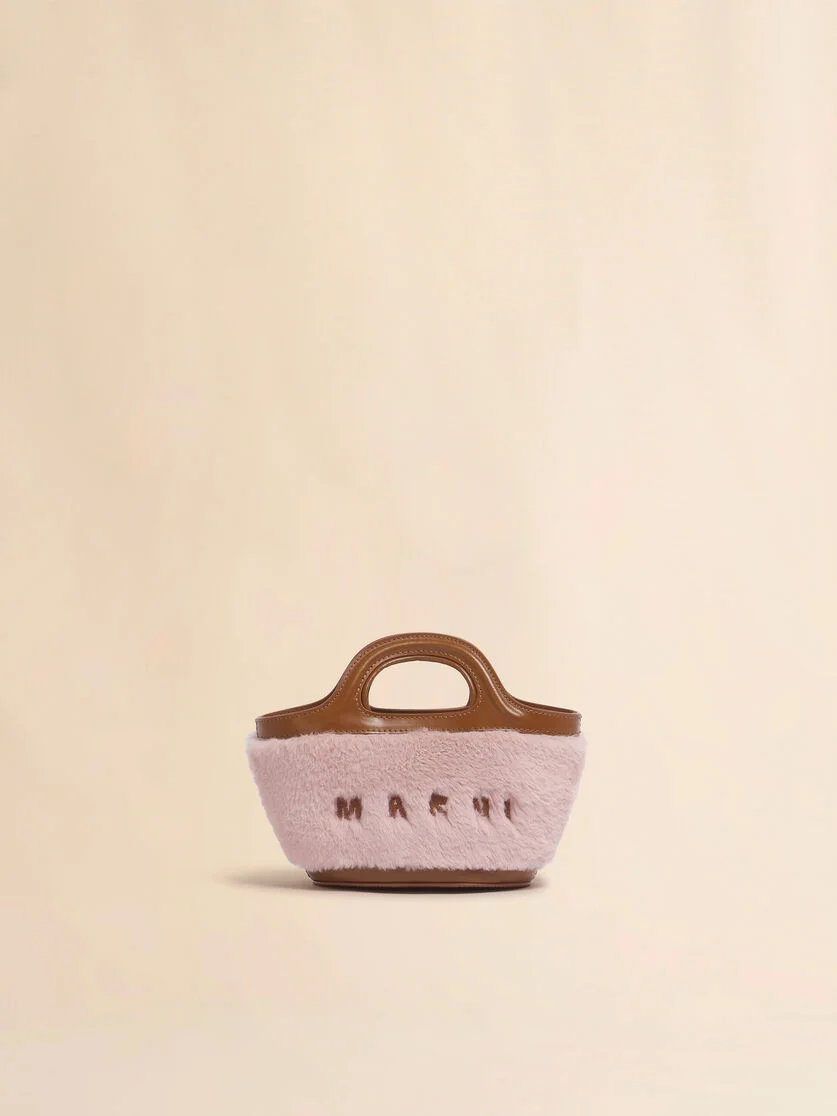 PINK TROPICALIA MICRO BAG WITH FAUX FUR TRIM