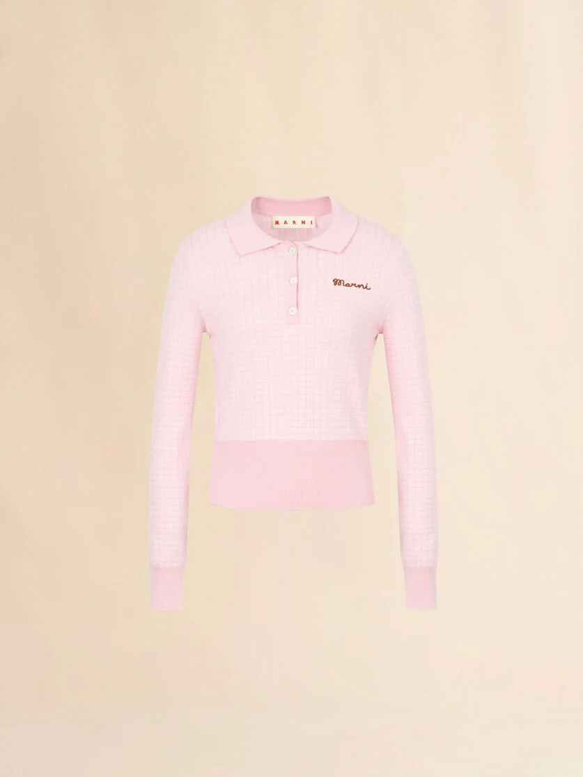 PINK WOOL-SILK POLO SHIRT WITH JACQUARD CHECK