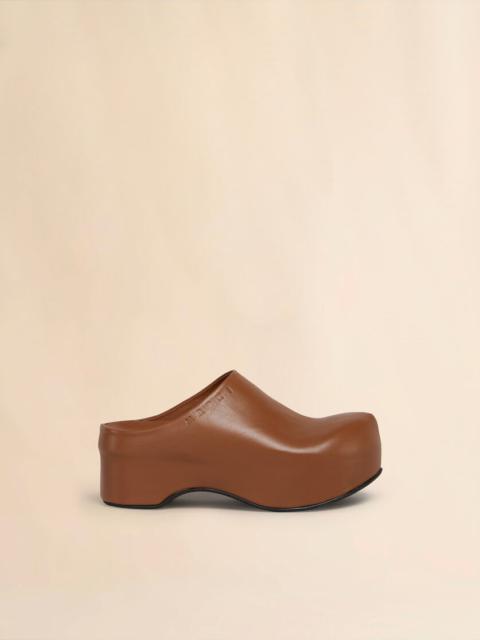 BROWN LEATHER CHUNKY CLOG SABOT