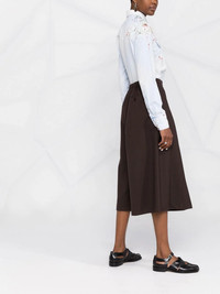 pleated cropped trousers Constructed with a traditional cut, these cropped trousers from Marni have voluminous wide legs. Made from equally classic virgin wool, they are presented in a military green hue and are entirely pleated, creating a fluid movement. Made in Italy Composition Lining: Viscose 100% Outer: Virgin Wool 100% SIZE & FIT Model measurements Height 5 ft 11 in(1.8 m) Bust/Chest 31.49 in(80 cm) Hips 36.61 in(93 cm) Waist 24.4 in(62 cm) FittingInformation This piece fits true to size. We recommend you get your regular size Cut for a loose fit Made with a mid-weight non-stretch fabric Washing instructions Dry Clean Only