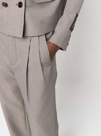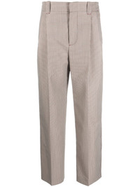 pleated cropped trousers Highlights - Beige/multicolour - Wool blend - Check pattern - Pleat detailing - Belt loops - Concealed front fastening - Cropped - Two side slash pockets - Straight leg - Rear button-fastening jetted pocket - Rear flap pocket Made in Italy Composition Outer: Wool 54%, Polyester 46% Lining: Viscose 100%, Cotton 100% SIZE & FIT Model measurements Height 5 ft 10 in(1.78 m) Bust/Chest 31.49 in(80 cm) Hips 37 in(94 cm) Waist 23.62 in(60 cm) FittingInformation Designed for a tapered fit, these trousers allow for a close fit at the waist and a loose unrestricted fit over the leg with a closer fit towards the ankle The partially elasticated waistband offers increased movement and comfort at the waist Made from a midweight non-stretch fabric This piece fits true to size – take your usual size Washing instructions Dry Clean Only
