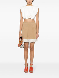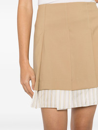 panelled pleated miniskirt Highlights - Light brown - Virgin wool - Panelled design - Layered design - Pleat detailing - Satin lining - Knee-length - Straight hem Made in Italy Composition Body: Virgin Wool 100%, Cupro 100% SIZE & FIT Model measurements Height 5 ft 10 in(1.77 m) Bust/Chest 31.49 in(80 cm) Hips 35.43 in(90 cm) Waist 25.19 in(64 cm) FittingInformation This mini-length skirt is intended to be worn just below the waist Made from a lightweight non-stretch fabric This piece fits true to size – take your usual size Measurement WAIST 28.34 in(72 cm) HIPS 37 in(94 cm) LENGTH 18.5 in(47 cm) Washing instructions Dry Clean Only