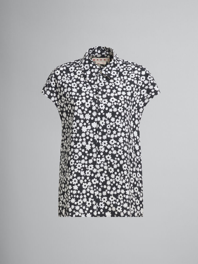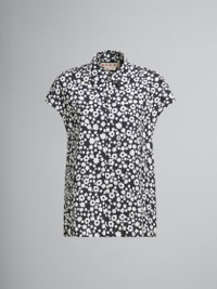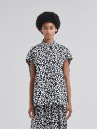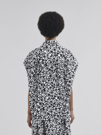 BLACK AND WHITE SLEEVELESS COCOON SHIRT WITH POP FIELDS MOTIF