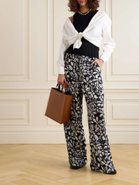 EDITORS'NOTES Marni's pants are decorated with an abstract floral pattern that has such a painterly look. Made from crepe, they have straight legs and drawstring ties at the waist to adjust the fit. SIZE & FIT Model measurements: - Fits true to size, take your normal size - Intended to be worn loose and low on the hips - Drawstring waist, designed for a comfortable fit - Lightweight, non-stretchy fabric - Model is 180cm/ 5'11" and is wearing an IT 40 - Bust: 81cm/ 32" - Waist: 63cm/ 25" - Hip: 91cm/ 36" DETAILS & CARE - Black and white crepe - Pull on - 100% viscose - Hand wash
