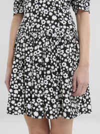 BLACK AND WHITE SHORT SATIN DRESS WITH POP FIELDS MOTIF