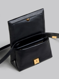 Shoulder bag made from puffy patent fabric, styled with a detachable strap and push-lock closure. Lined in vegan leather with an inside zip pocket. Vintage gold hardware. Made in Italy DETAILS COMPOSITION Body: 100% Calf Leather - Lining: 55% Cotton 45% Polyurethane - Padding: 100% Polyester - Metallic Parts: 100% Brass